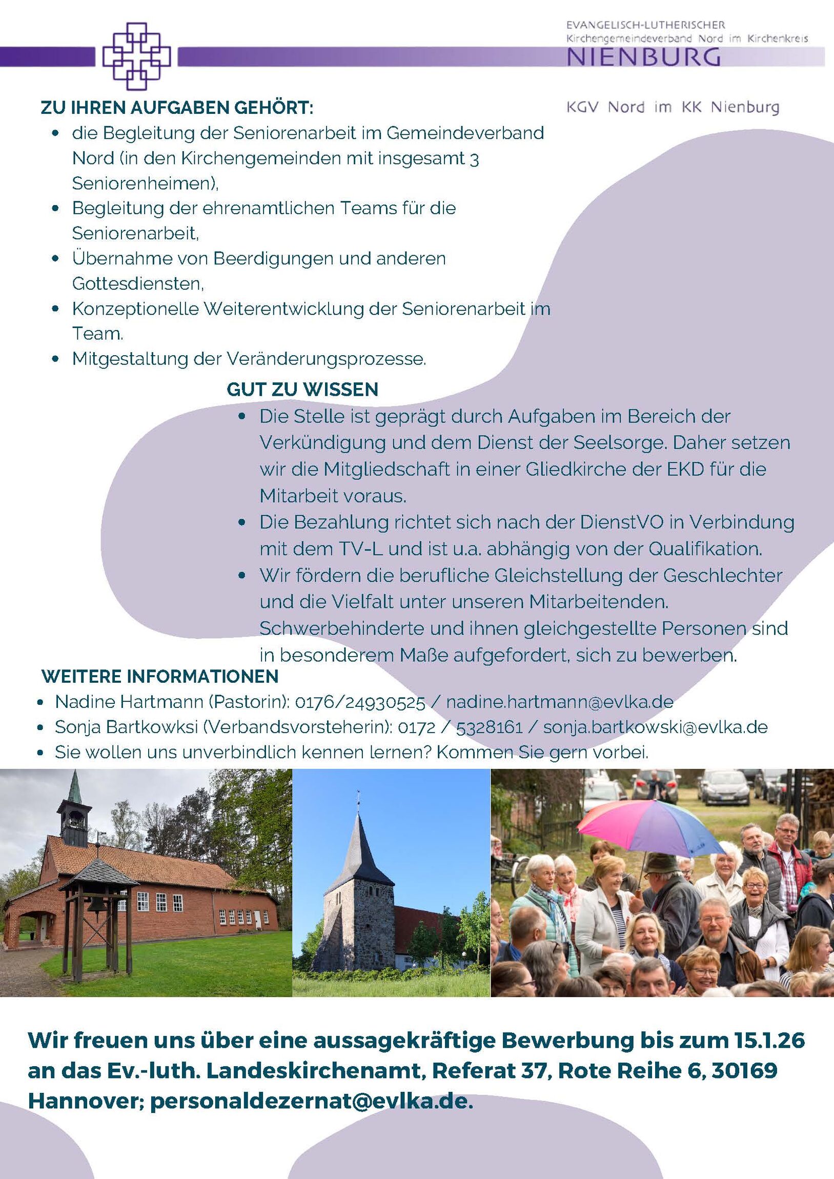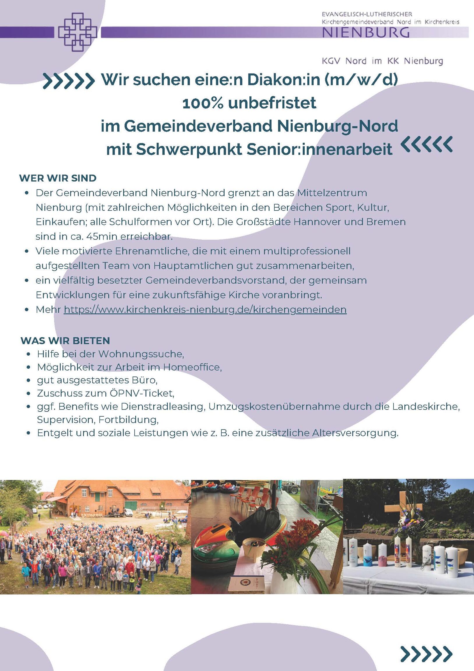 Diakon:in (m/w/d) 100% unbefristet im Gemeindeverband Nienburg-Nord mit Schwerpunkt Senior:innenarbeit