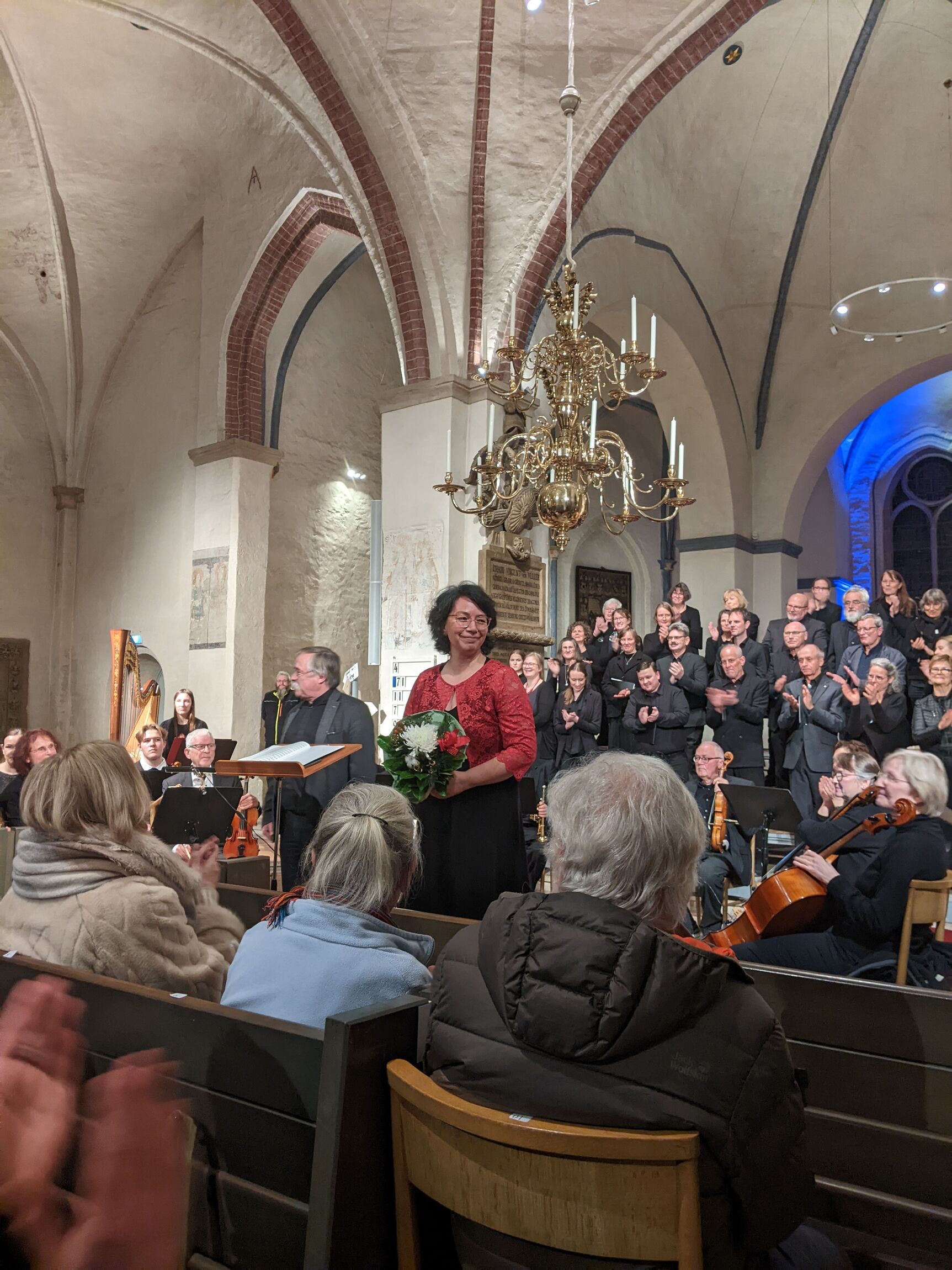 Er war es auch, der über viele Monate in die Bresche gesprungen war, um für das Nienburger Kammerorchester die Lücke zu füllen, die mit dem Weggang von Kirchenkreiskantor Christian Scheel entstanden war. Benfers großes Engagement und inspirierende Orchesterarbeit hob denn auch Superintendentin Dr. Christiane de Vos hervor. Ihr Dank und Blumen für den Kirchenmusiker aus Verden waren ebenso obligat wie für Tina Röber-Burzeya. Obwohl deren berufliches Engagement in Nienburg erst mit Beginn des neuen Jahres festgeschrieben ist, hat die engagierte Kirchenmusikerin in denkbar kürzester Zeit die ebenfalls verwaiste Nienburger Kantorei zu einem motivierten und aussagestarken Klangkörper geformt, der den hohen Ansprüchen dieses Programms mit Hingabe gerecht wurde.